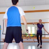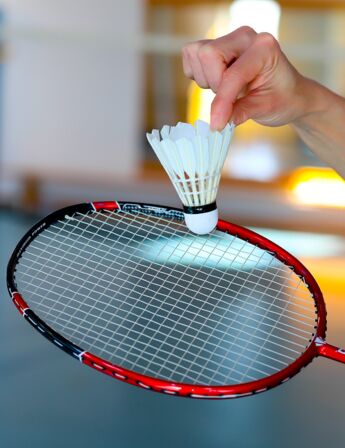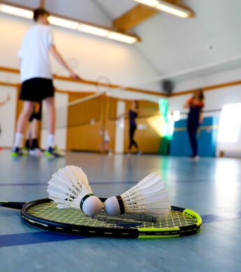 ist Rückschlagspiel für zwei, oder vier Spieler und hat ein gewisse Ähnlichkeit mit Tennis, unterscheidet sich davon jedoch in spieltechnischen und taktischen Aspekten. Ein Badmintonschläger ist leicht und man spielt mit einem Federball über ein Netz. Der Federball darf dabei den Boden nicht berühren.